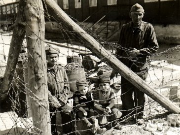 Unter den Häftlingen der deutschen KZ waren unzählige Kinder und Jugendliche. Das Foto zeigt Überlebende des KZ Buchenwald, dem das Außenlager Mittelbau-Dora angeschlossen war. Die Häftlinge des Außenlagers wurden als Zwangsarbeiter eingesetzt. Im Harz mussten sie unterirdische Stollenanlagen für die Rüstungsindustrie bauen - gemeinsam mit Kriegsgefangenen der besetzten Länder. In Blankenburg, dem jetzigen Standort des Zuges, starben im KZ Mittelbau-Dora Kinder und Jugendliche mehrerer Nationen. Oft kennen wir nicht einmal ihre Namen (Blankenburger Chronik). Die Transporte zwischen den Lagern führte die "Deutsche Reichsbahn" durch. Bitte lesen Sie unser Gutachten über die Mordbeihilfe des deutschen Eisenbahnunternehmens.