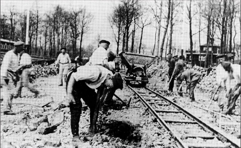 Inge Katzmanns Vater wurde bereits 1938 verhaftet und in das KZ Buchenwald verbracht. Das Foto zeigt Gefangene bei Arbeiten an der sogenannten Buchenwald-Bahn. Die Gleise, die vom Weimarer Bahnhof abgingen, transportierten Zehntausende in den Tod.