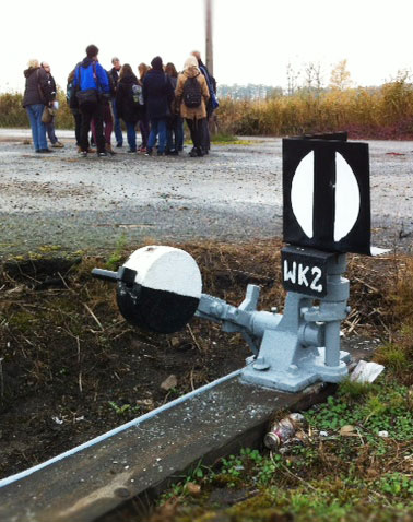 Die Teilnehmer der Gedenkstättenfahrt nach Sobibór suchten auch andere Orte deutscher Massenverbrechen in der Lubliner Gegend auf. Das Foto zeigt Reste der Rampe von Izbica, einem früheren Getto-Städtchen. Hier kamen die "Reichsbahn"-Züge mit Deportierten aus Deutschland und aus den Niederlanden an; sie fuhren später in die Vernichtungslager der "Aktion Reinhardt". |